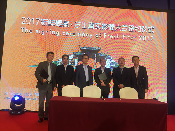 4月17日,2017年北京国际电影节纪录单元在京开幕。作为本次开幕式的重要环节之一,2017新鲜提案·东山真实影像大会签约仪式隆重举行。江苏省新闻出版广电局副局长罗舒泽、中国国际广播电台副总编辑任谦以及本次仪式的签约三方国广东方网络(北京)有限公司(以下简称国广东方)总编辑王坚平、苏州广播电视总台副总编辑王晓雄、苏州东山文化传媒发展有限公司董事长罗敏圣共同见证了这一时刻。