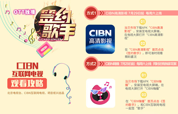 7月28日,由北京电视台、CIBN互联网电视、北京玥音炬兴出品的大型深度音乐讨论节目《签约歌手》在北京卫视火爆开播。