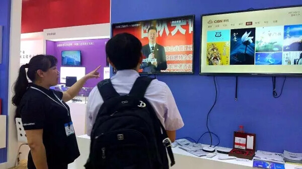 CIBN教育工作人员为游客展示机顶盒内容